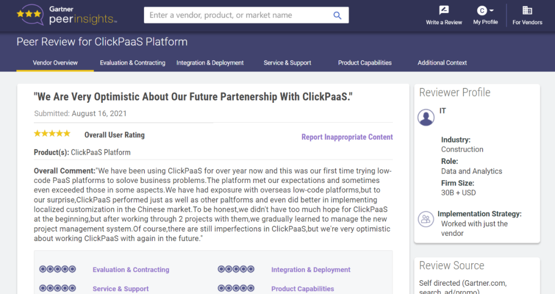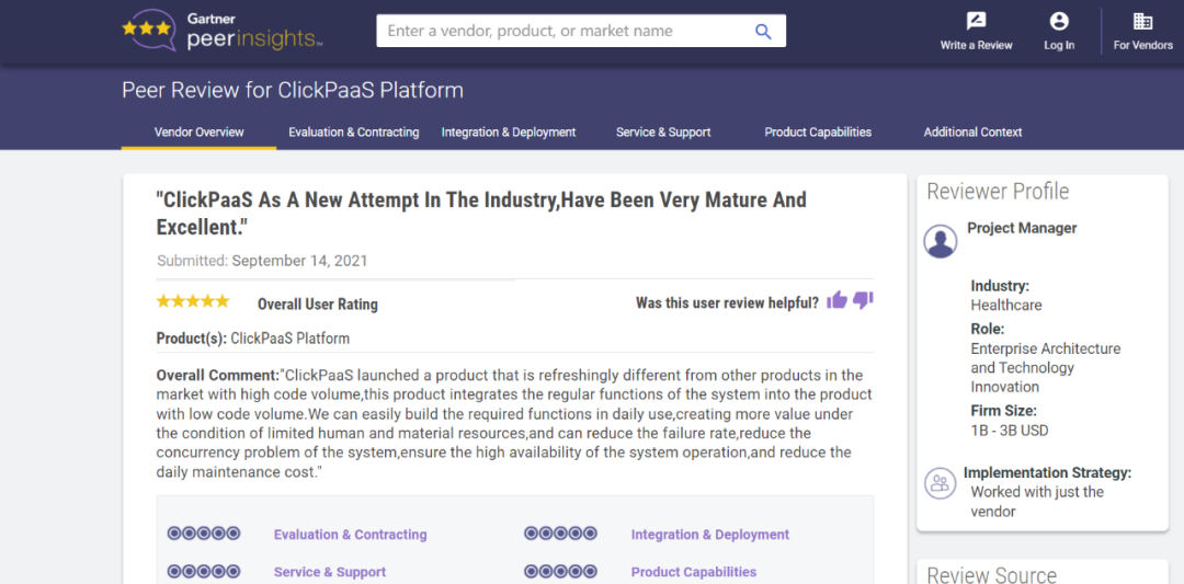 Tips:::【Peer Insights】——用户对企业IT产品和服务发布真实评价的平台。。。目前已有355个市场,,,,255,000条经过验证的评价。。每一条评价Gartner会针对参评企业营收规模及参评人员信息做验证、、、、评价内容做多维核实。。。